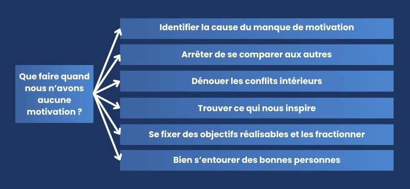 Si vous êtes dans une telle situation alors il est primordial de réagir. En effet, manquer de confiance en vous ou avoir peur d’échouer vont vous empêcher de passer à l’action. Vous allez alors sentir que vous avez besoin de motivation pour avancer.